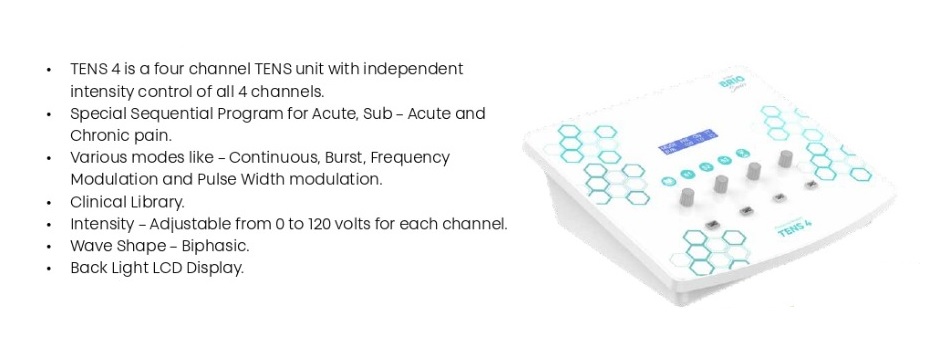 - TENS 4 IS a four channel TENS unit with independent intensity control of all 4 channels