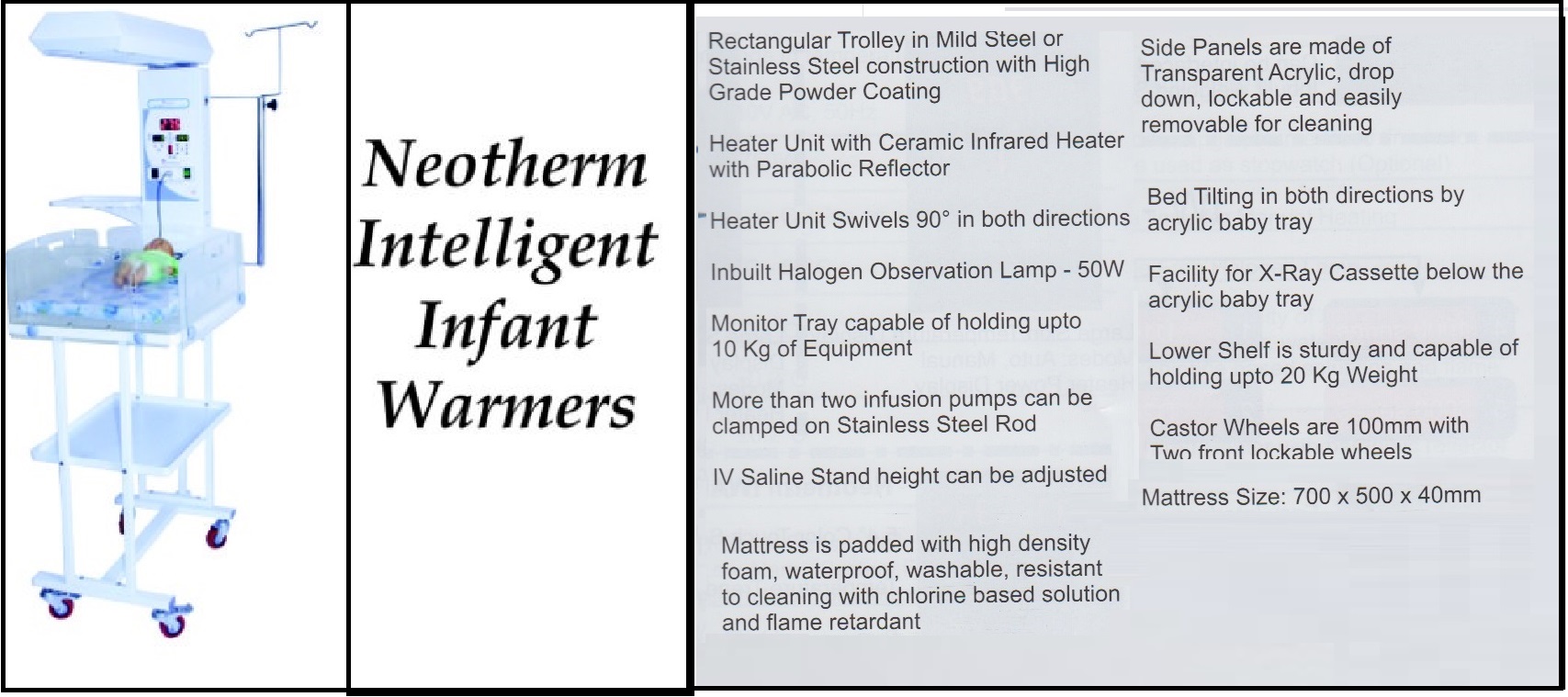 facility for x-ray cassette below the acrylic baby tray