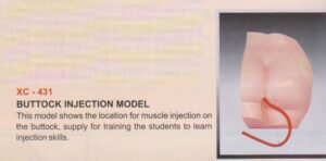 This model shows the location for muscle injection on the buttock, supply for training the students to learn injection skills.